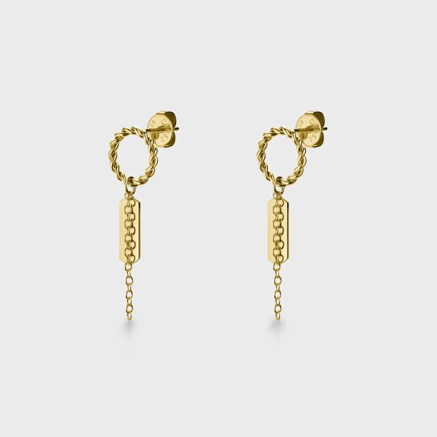 En quête d’un look minimaliste, mais un brin fantaisiste ? Ne cherchez pas davantage. Nos boucles d’oreilles dorées ornées d’un pendentif torsadé associent de façon remarquable style contemporain et élégance. Créées pour celles qui ont un sens aigu du détail.