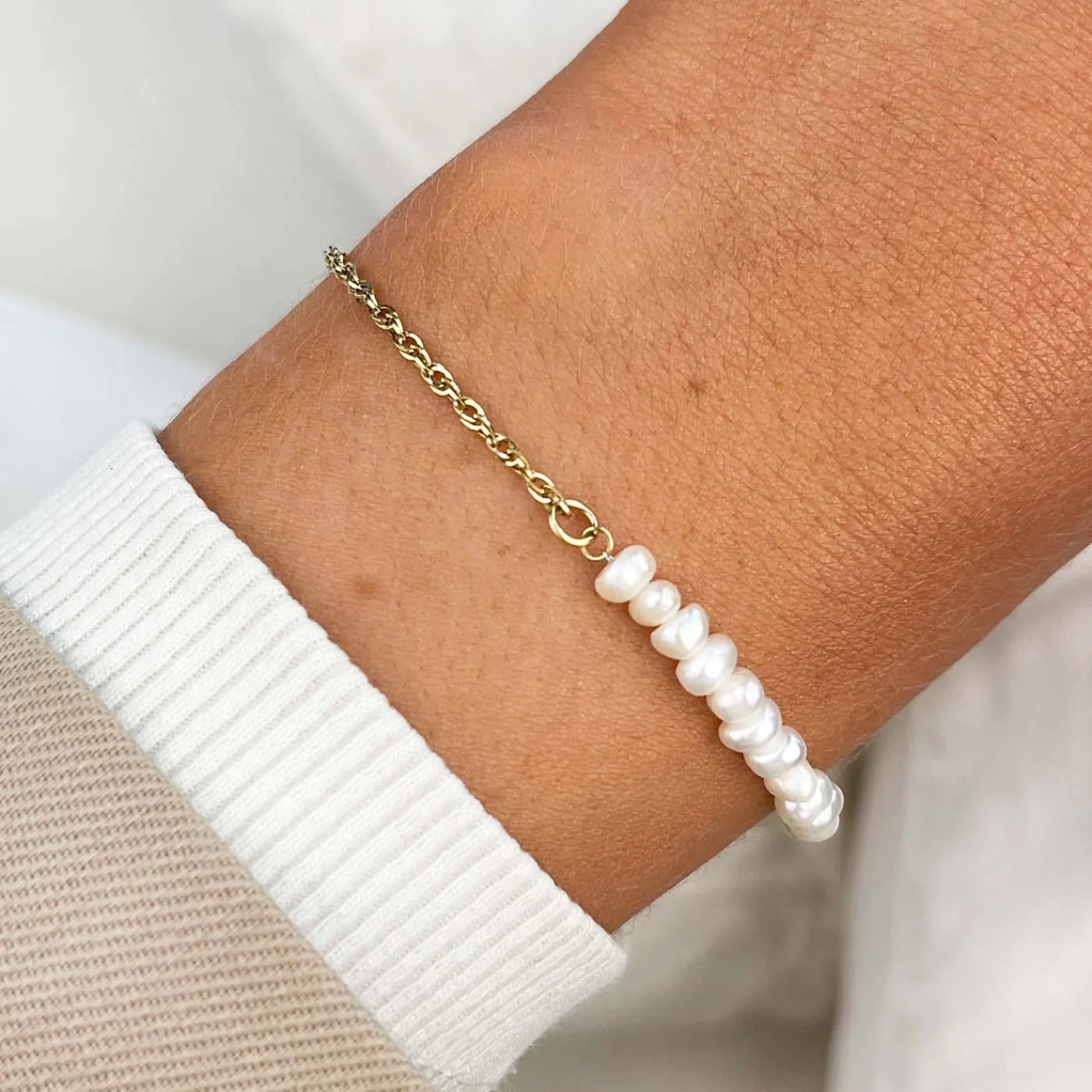 CLUSE Bracelets^Essentielle Mixed Chain Pearl Bracelet, Gold Colour