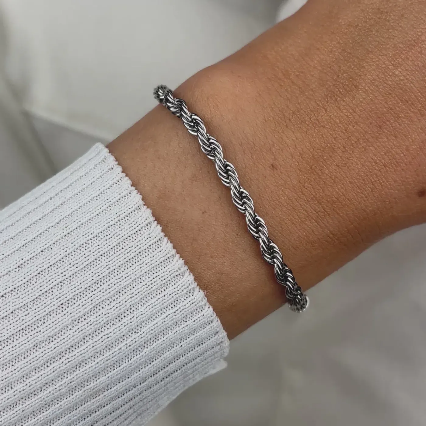 Seul pour un style épuré ou superposé à d’autres pour un style plus étoffé, ce bracelet inspiré de la corde torsadée apporte du caractère à votre look. Une touche argent légère et délicate.