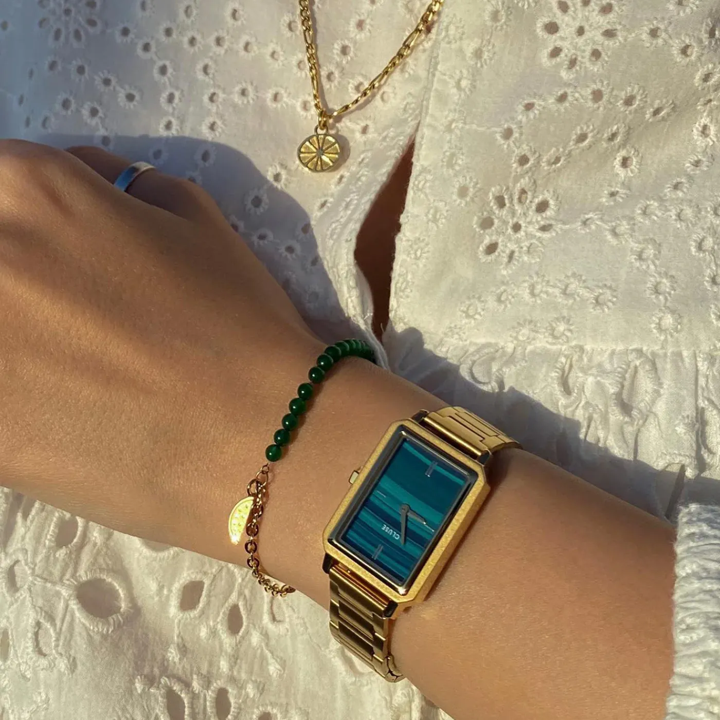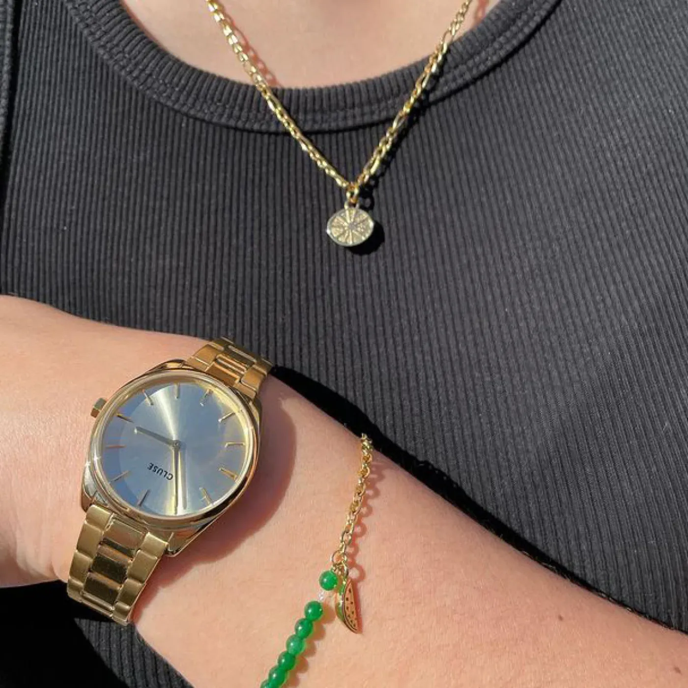 Ce collier CLUSE pour femmes vous mettra d’humeur estivale. Le collier Essentielle Figaro Chain Citrus Charm associe une chaine figaro et un délicat pendentif couleur or en forme de citron. Associez ce collier avec d’autres bijoux CLUSE pour un effet « plus c’est mieux » ou alors portez le seul pour un effet simple mais puissant.