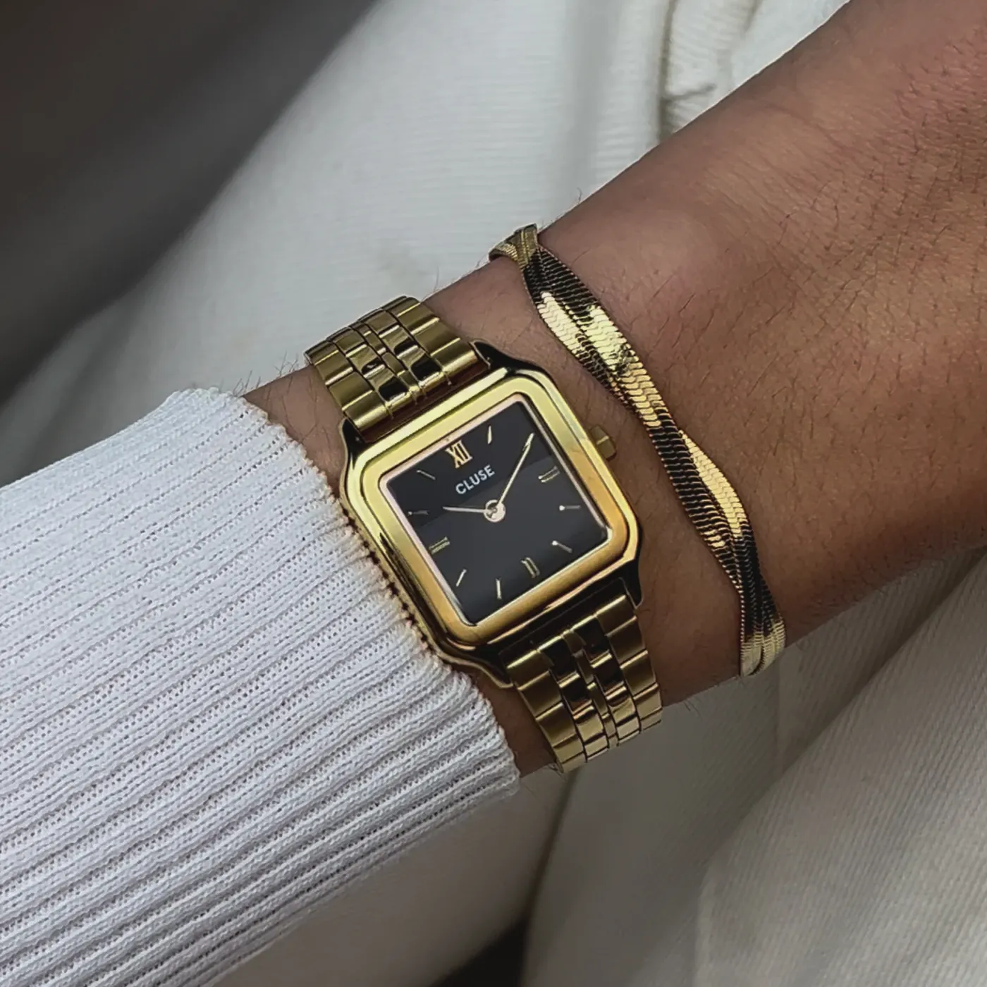 CLUSE Gracieuse Petite^Gift Box Gracieuse Petite Watch Steel, Black & Twisted Snake Bracelet, Gold Colour