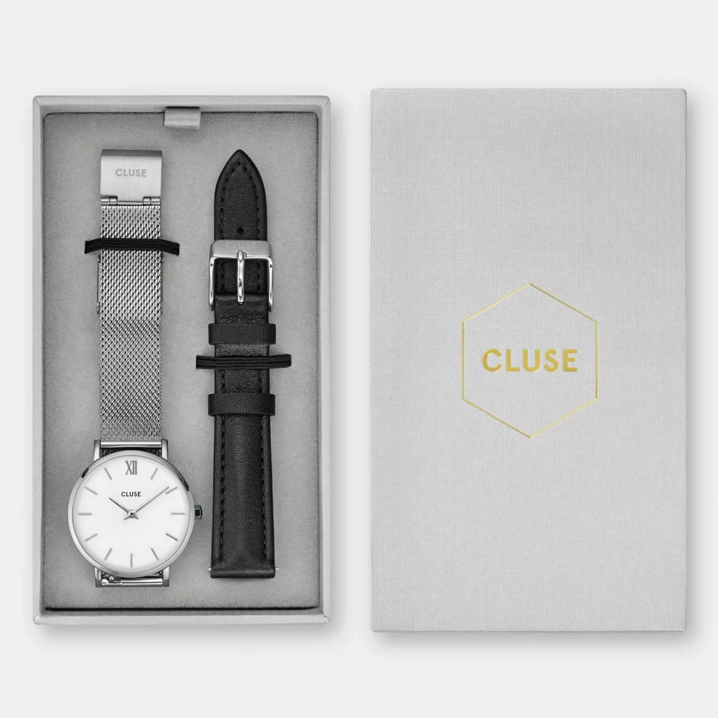Be the first to review “CLUSE Minuit^Gift Box Minuit Mesh & Leather Strap Silver Colour” Annuler la réponse