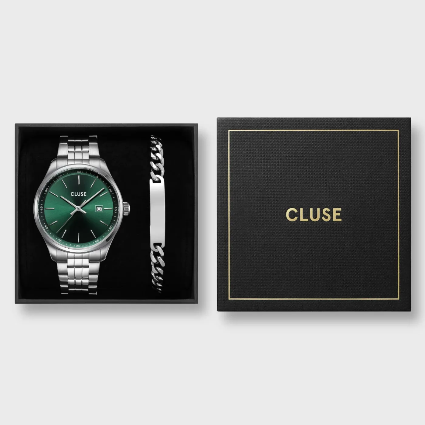 CLUSE Montres Argent|Anthéor^Gift Box Anthéor Steel Watch Green and Silver Chain Bracelet