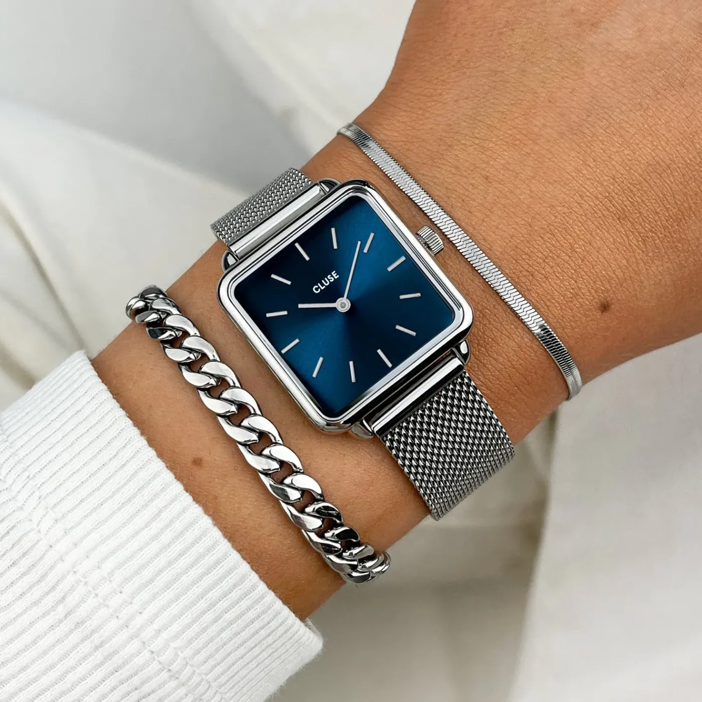 Comme pour tous les modèles de la collection La Tétragone, le bracelet de cette montre est interchangeable avec tous les bracelets-montres CLUSE de taille 16 mm.