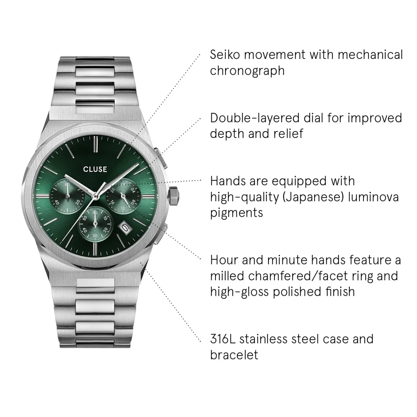 CLUSE Montres Argent|Vigoureux^Vigoureux Chrono Steel Green, Silver Colour