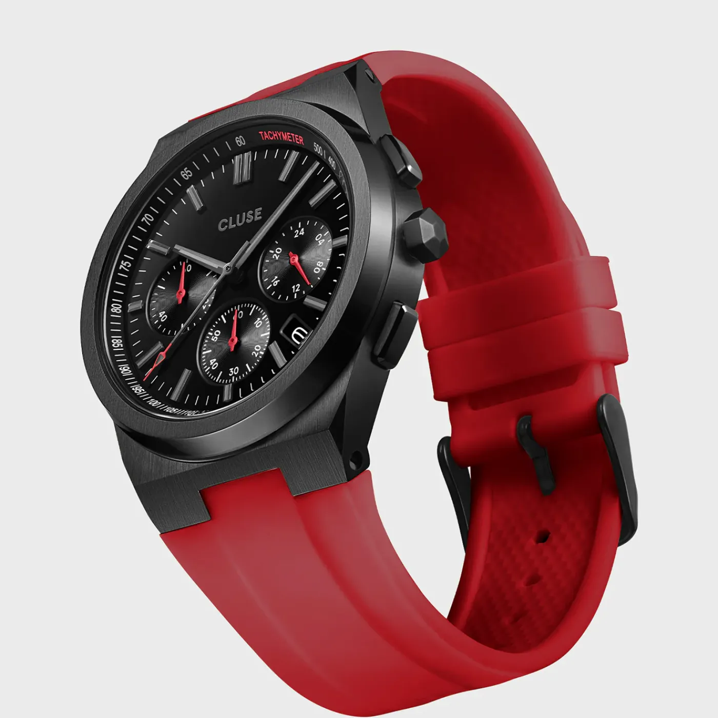 CLUSE Montres Noir|Montres Noir^Vigoureux Chrono Watch Silicone Red, Black Colour
