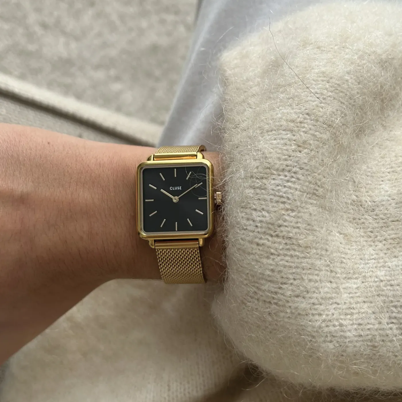 CLUSE Montres Noir|Montres Or^La Tétragone Mesh Black, Gold Colour