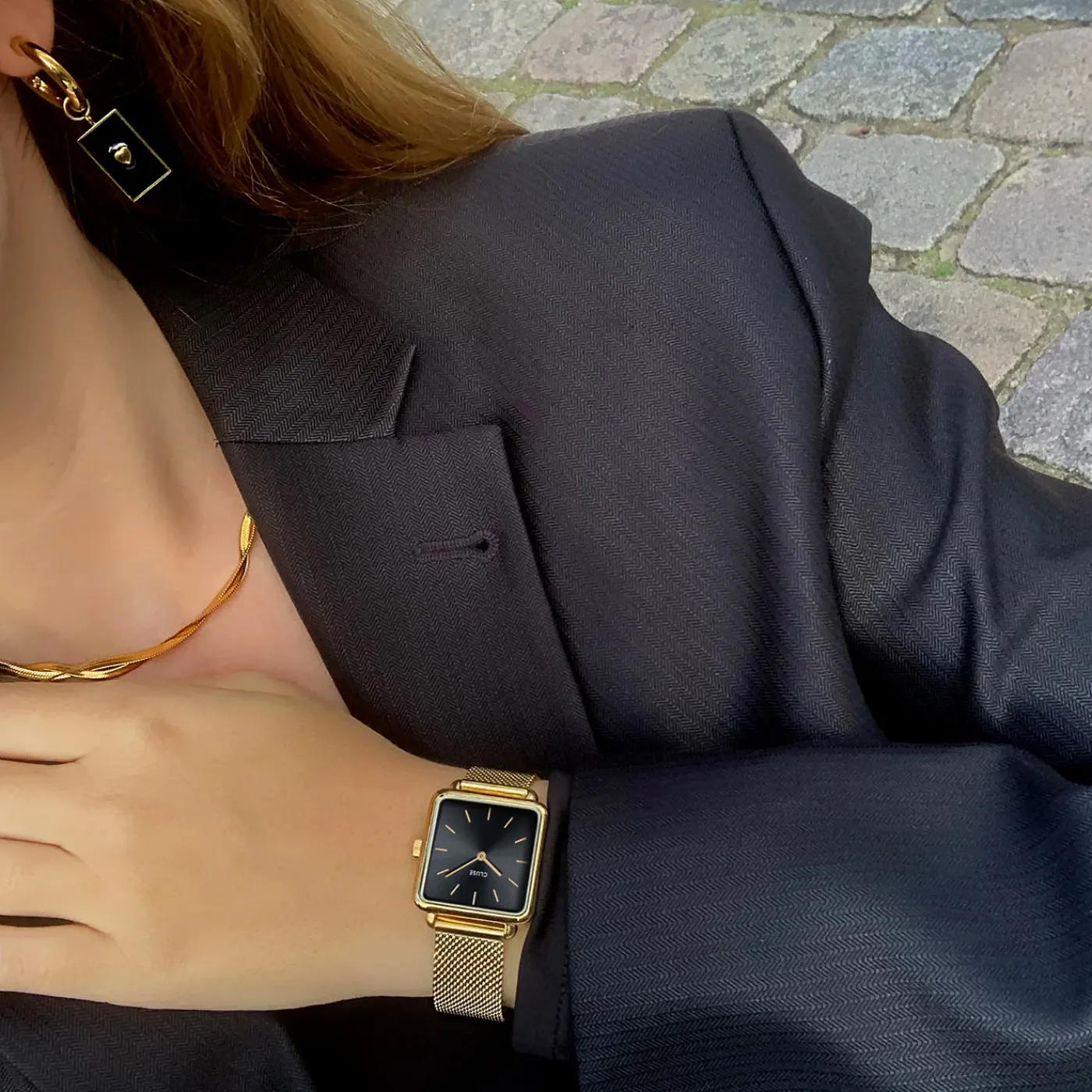 Avec son boîtier carré, ses bords arrondis et son style épuré, la montre La Tétragone pour femme joue sur les formes et les lignes de son design. Avec son cadran noir, son boîtier couleur or et son bracelet en maille millanaise, cette montre est un grand classique qui ne passera jamais inaperçu. Comme pour toutes nos montres La Tétragone, le bracelet peut être facilement changé avec tous les bracelets CLUSE de 16 mm. Pour changer la pile, nous vous recommandons de vous adresser à un bijoutier ou à un horloger proche de chez vous.