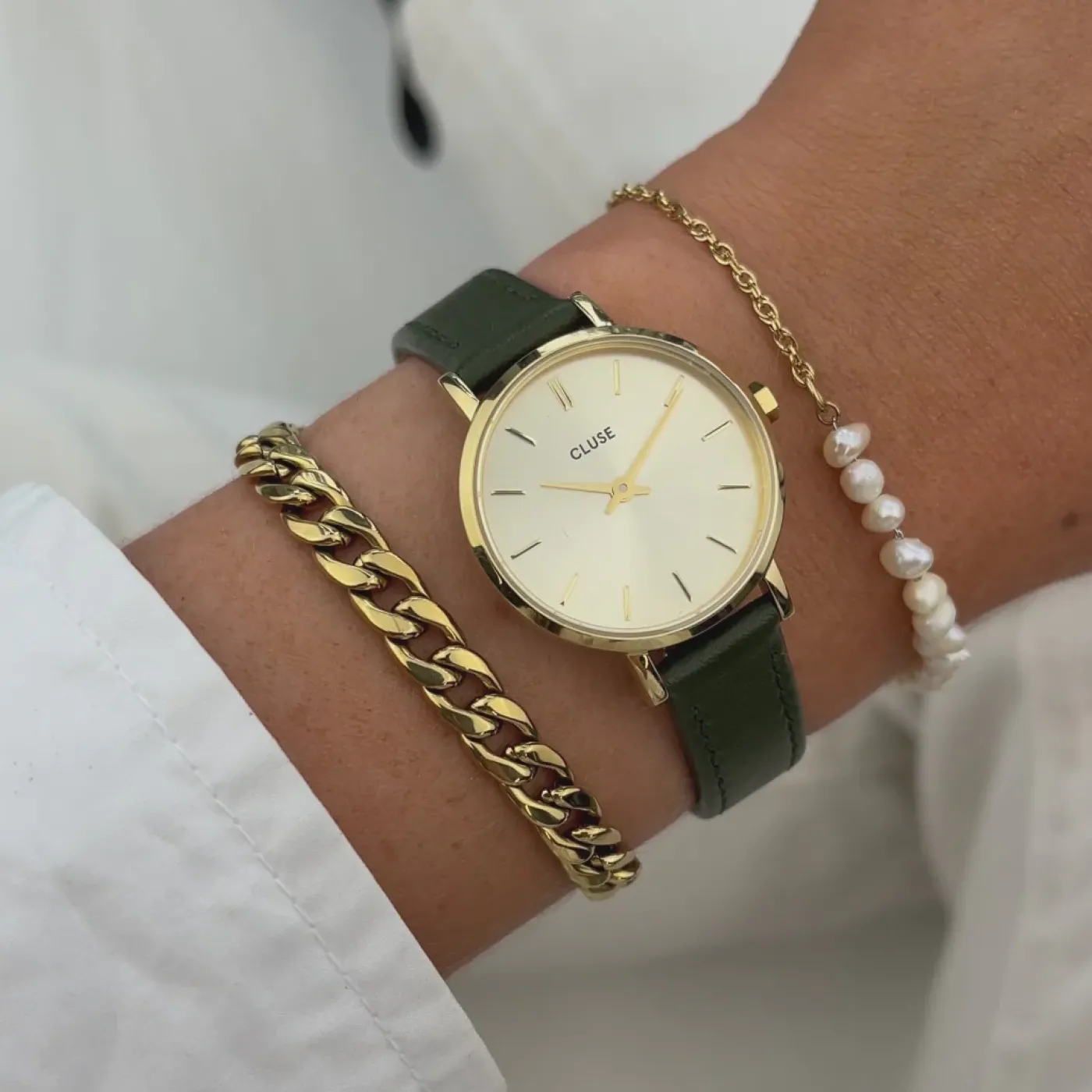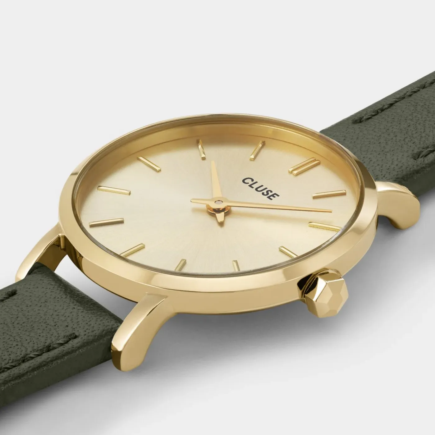 Petite de taille mais ça n’empêche pas d’en rêver. Avec son boîtier raffiné de 28 mm, notre montre Boho Chic Petite sera votre meilleure alliée si vous recherchez une pièce sobre, intemporelle et plus petite. Avec son cadran couleur champagne, son boîtier couleur or et son bracelet en cuir vert, vous serez à la pointe de la mode avec ce trio gagnant de couleurs. Une montre pour femme qui a été conçue pour durer dans le temps grâce à son boîtier en acier inoxydable et son bracelet en cuir italien. Le bracelet de montre peut être facilement changé avec tous les bracelets CLUSE de 12 mm, ce qui vous permet de personnaliser votre montre comme bon vous semble.