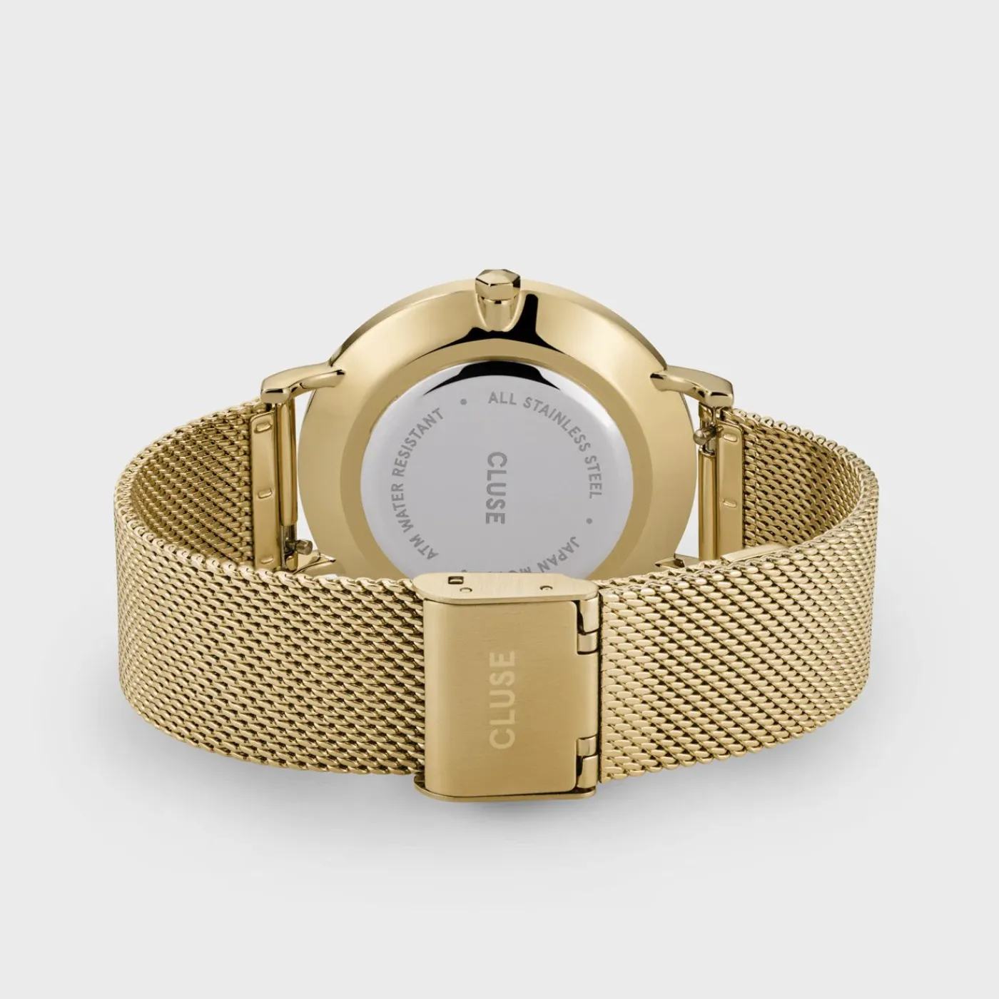 La montre est présentée dans une pochette en similicuir gris. Cette montre peut, comme toutes les montres de la collection Boho Chic, être facilement personnalisée avec n’importe quel bracelet à 18 mm.