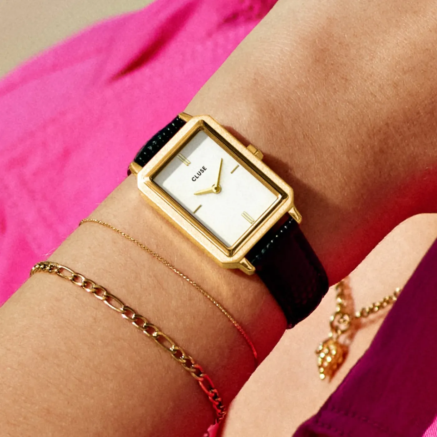CLUSE Montres Or|Fluette^Fluette Leather Black Lizard, Gold Colour