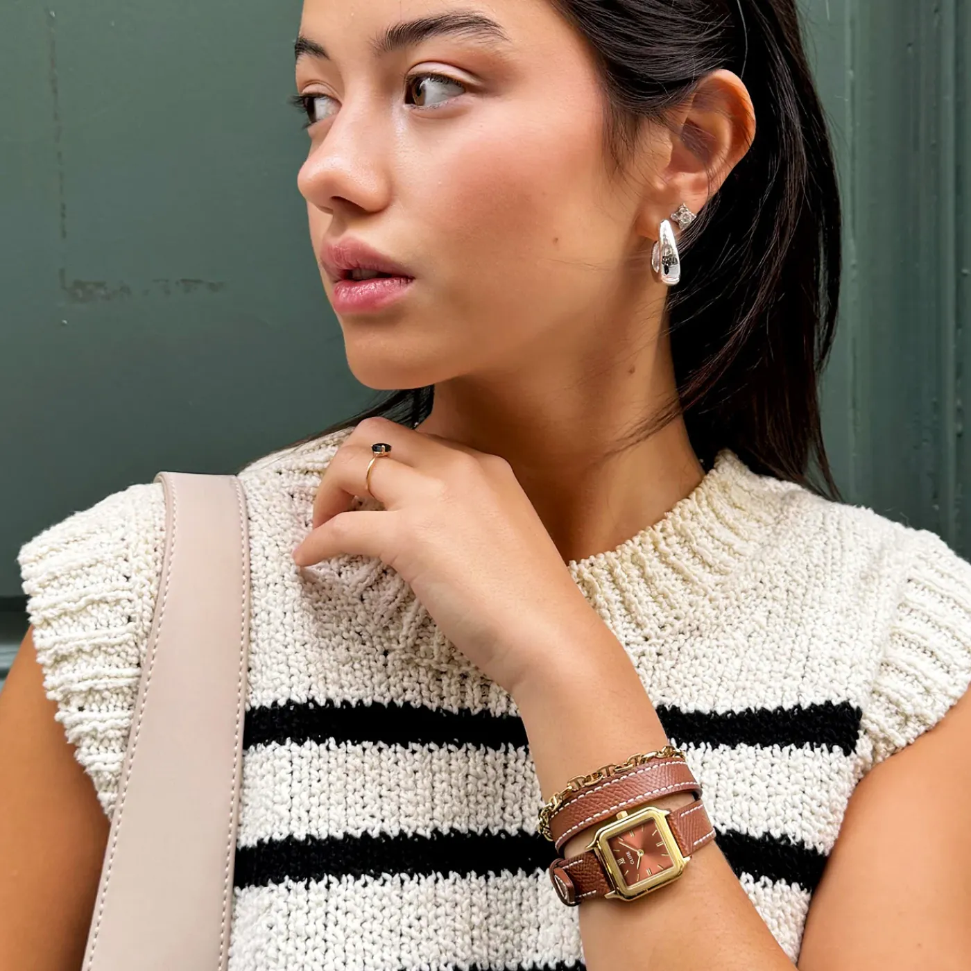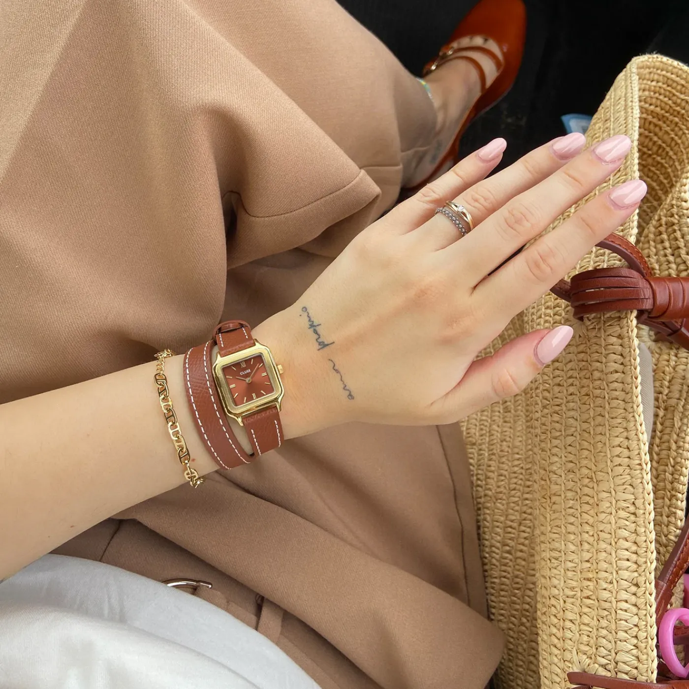 Nous vous présentons la montre Gracieuse Petite pour femme avec un nouveau détail de double bracelet de montre. Cette montre est dotée d’un boîtier carré de 24 mm, de couleur or, qui entoure le cadran marron, créant une esthétique harmonieuse et luxueuse. Le double bracelet en cuir de 14 mm, d’une couleur coquille de noix assortie, orné de surpiqûres blanches, rehausse sa palette de couleurs riches et raffinées, idéale pour les saisons d’automne et d’hiver. Plus qu’une simple montre, la Gracieuse Petite est un véritable bijou, un accessoire tendance conçu pour rehausser chaque look. Personnalisez facilement le look de votre montre avec n’importe quel bracelet de montre de 14 mm. Vous pouvez facilement ajuster vous-même la taille du bracelet de montre.