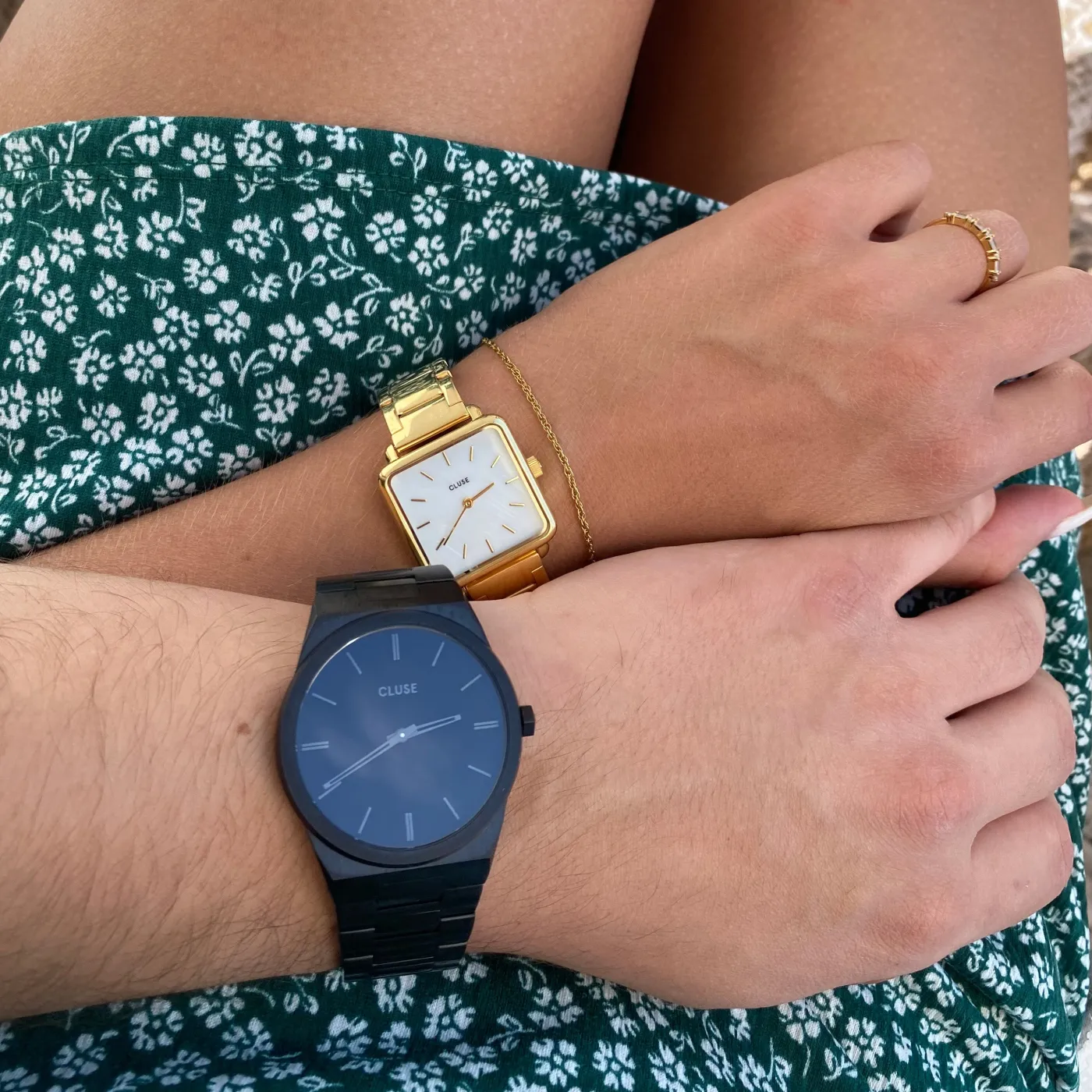 Avec leur boîtier carré arrondi aux angles, les montres de la collection La Tétragone jouent sur les lignes, les structures et les formes. Elles mêlent avec élégance féminité et style androgyne. Ce modèle La Tétragone qui combine un cadran nacré blanc classique et un bracelet de montre or à maillons triples est l’expression parfaite d’un design contemporain et intemporel. Comme pour tous les modèles de notre collection La Tétragone, le bracelet de cette montre est interchangeable avec tous les bracelets de montres CLUSE de 16 mm. Pour ajuster le bracelet, nous vous recommandons de vous rendre chez votre bijoutier ou horloger habituel.