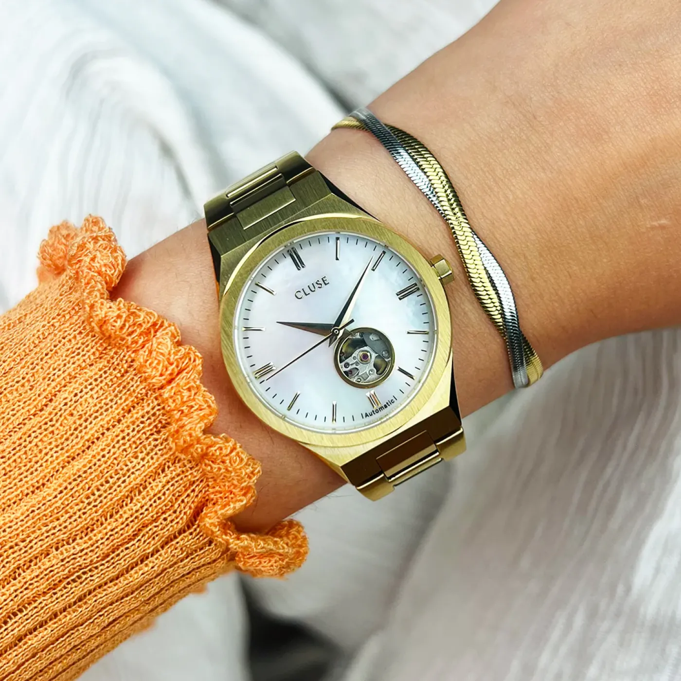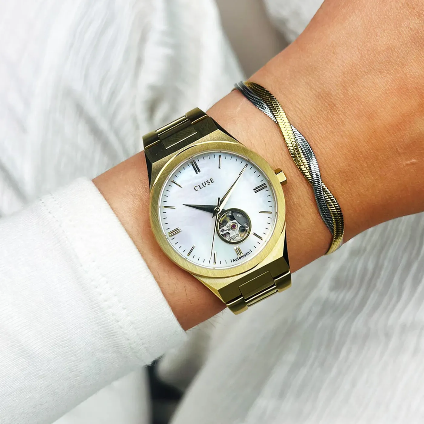 CLUSE Montres Or|Vigoureux^Vigoureux Automatic Watch, White MOP, Gold Colour.