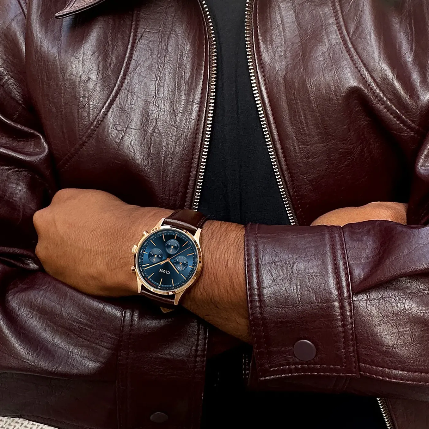 CLUSE Montres Rose Gold|Anthéor^Anthéor Multifunction Watch Leather Blue, Rose Gold Colour