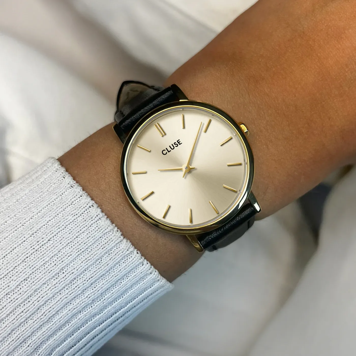 CLUSE Pavane Petite^Gift Box Pavane Petite 2.0 Steel Watch Gold & Black Leather Strap, Gold Colour