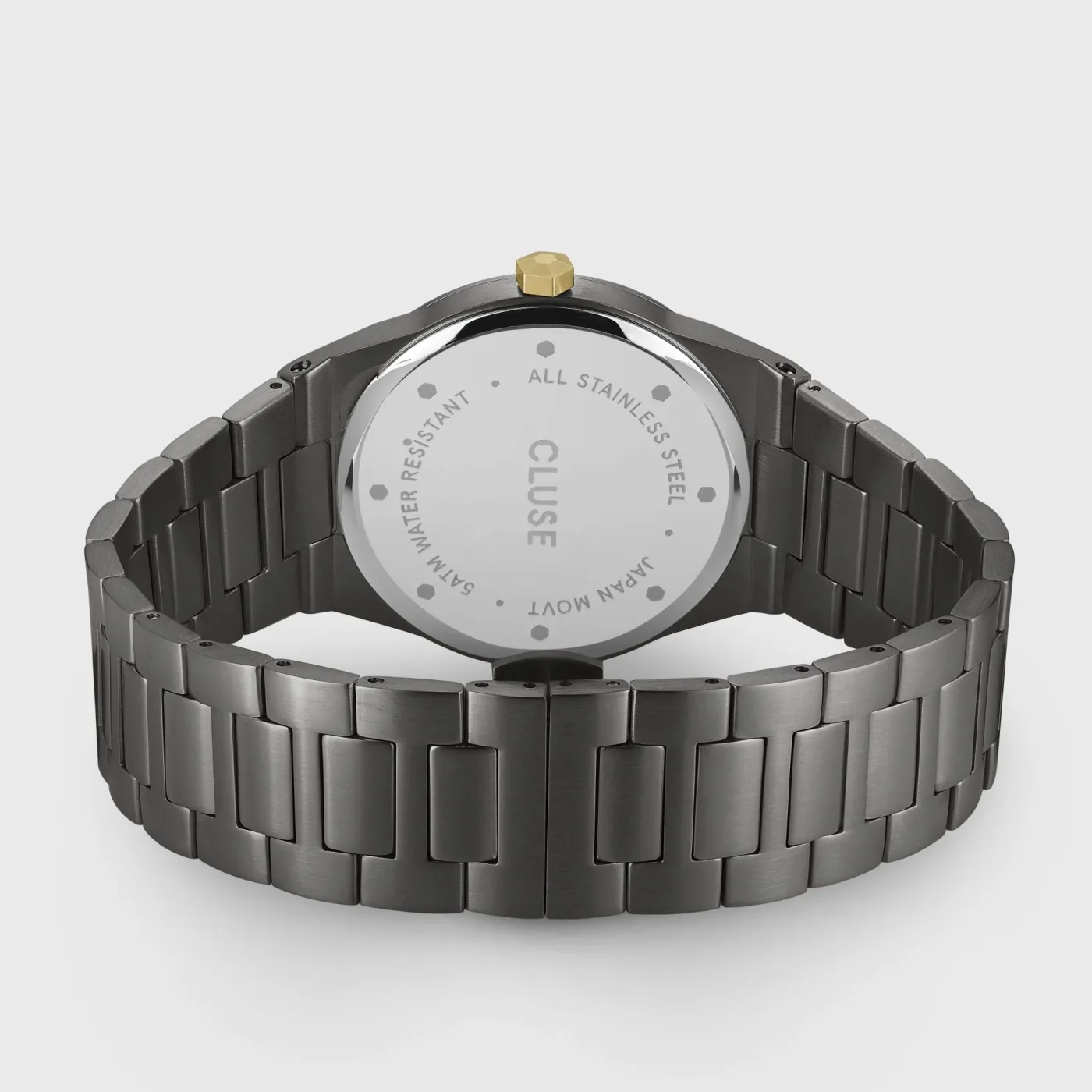 Plus besoin de choisir entre look sportif ou chic, cette montre vous offre les deux. Vigoureux est la version CLUSE d’une montre de sport de luxe : minimaliste & ultra fine, mais aussi masculine & audacieuse. Un style intense et gris métal foncé, pour un sujet de conversation idéal. Son bracelet en acier inoxydable avec fermoir invisible à boucle déployante s’intègre parfaitement au boîtier en acier inoxydable. Propulsée par un mouvement à quartz Miyota haute performance, cette montre vous accompagnera durant vos journées et nuits plus ambitieuses. Résistance à l’eau : 5 ATM. Pour ajuster le bracelet, nous vous recommandons de vous rendre chez votre bijoutier ou horloger habituel.