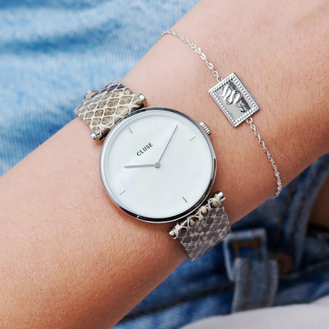 CLUSE Voir Bracelets De La Tétragone|Voir Bracelets De La Tétragone Multifunction^Strap 16 mm Leather Python Grey, Silver Colour
