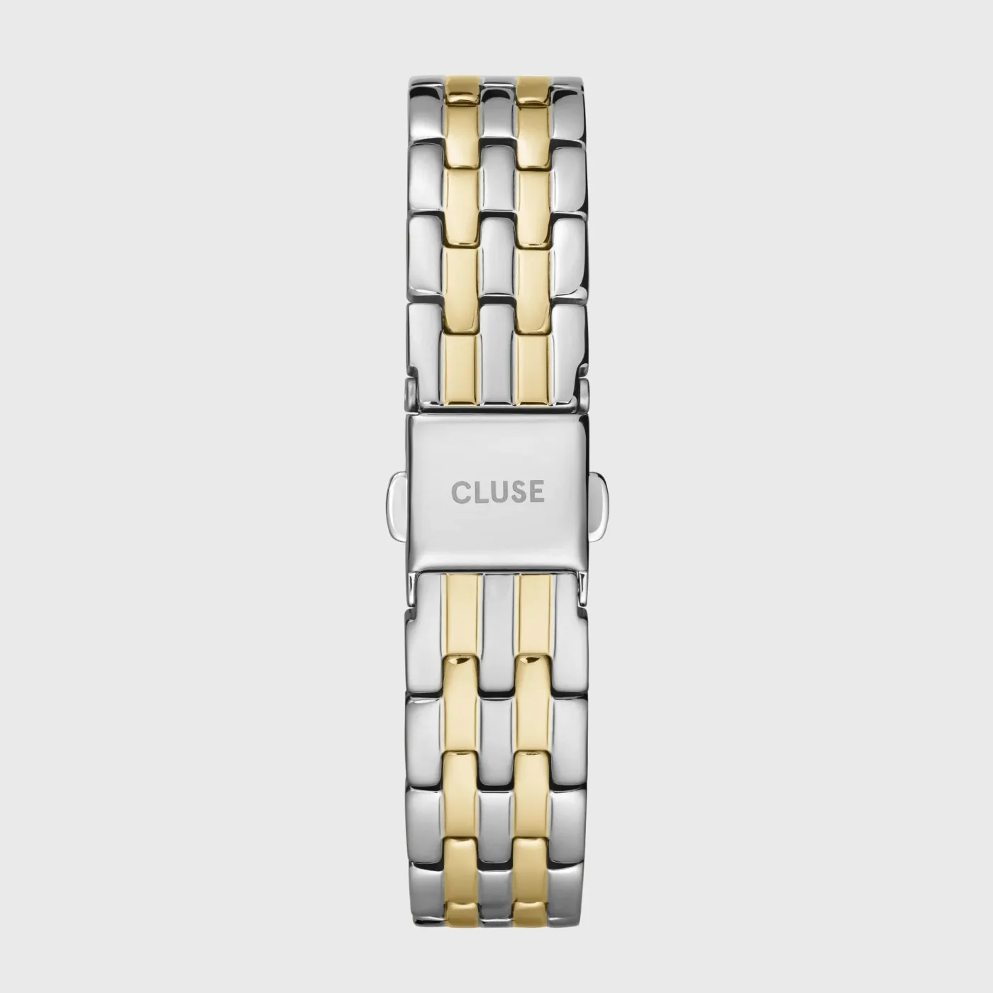 Ce bracelet à 5 maillons de 16mm en finition bicolore argent et or ajoute une touche de glamour raffiné à votre montre CLUSE. Une conception durable faite d’acier inoxydable de haute qualité. La montre s’ouvre et se ferme grâce à un fermoir à boucle déployante. Équipée d’un système à clipser, elle peut être remplacée par n’importe quel autre bracelet CLUSE de 16 mm. Pour ajuster le bracelet, nous vous recommandons de vous rendre chez votre bijoutier ou horloger habituel.